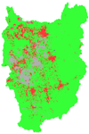 前述の通り、遠隔から観測するため時には雲により地上の状況の観測が困難であったり、地上での検証作業や解析方法の検討が必要ではあるが、過去に観測されたデータを慎重に解析することにより、時間軸をさかのぼり、過去から現在までの変動を空間的に知る事ができる。衛星による観測は当初は軍事目的であったが、1972年に初めて地球陸面の環境を観測する目的のLANDSAT衛星1号がアメリカにより打ち上げられた。この衛星プロジェクトは現在も継続しており7号が観測を続けている。日本では、2006年1月にだいち(ALOS)衛星が打ち上げられデータも順調に取得されている。その名前の通り大地を詳細に観測する目的で打ち上げられた衛星である。下図は、1975年、1985年、2000年、(それぞれLANDSAT衛星2号、5号、7号による観測)、2006 年(ALOS衛星による観測)における奈良県北部大和平野地区の植物被覆率の変化の様子を示す。緑色が植生に覆われた地域、赤が市街域や開発地域を示す。1985年に北部や南部の道路沿いに開発が進み、2000年にはさらに住宅地等が広がっている様子が観測できる。また、2006年のデータは10mの空間分解能で観測しているため、LANDSAT衛星の結果と比べてより鮮明に住宅地等の形状が観測されている。またALOS衛星には、数mの空間分解能で多方向からの観測を行なうセンサも搭載されている。このような高空間分解能のデータの利用によりこれまでむずかしかった都市域の緑地分布や森林内の状況の詳細な解析に利用できる。LANDSAT衛星の35年にも渡るプロジェクトに敬意を表するとともに、日本の地球観測プロジェクトも現在は未来への貴重なデータを取得しているということを念頭におき、ゆるぎないポリシーのもと長く継続して観測していく事を期待したい。