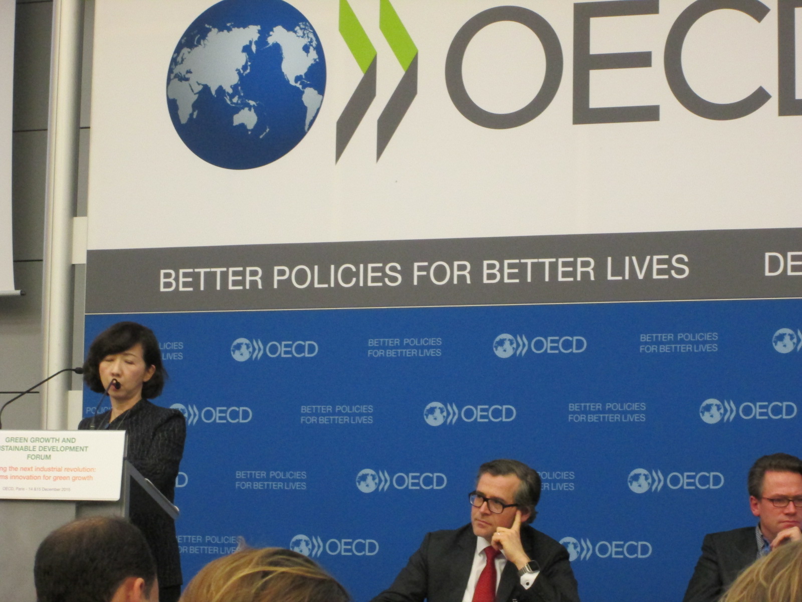 2015年12月14日-15日 パリでOECD (経済協力開発機構)主宰のGreen Growth and Sustainable Development (GGSD) forumが開催され、本学の林田佐智子教授がスピーカーとして招待されて講演を行いました。